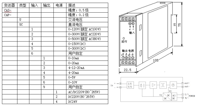 CAS-U141交流電壓變送器是將被測交流電壓信號(hào)轉(zhuǎn)換成按線性比例輸出直流電流并隔離的設(shè)備,配以相應(yīng)的指示儀表或裝置是電力系統(tǒng)、遠(yuǎn)動(dòng)裝置、自動(dòng)化控制系統(tǒng)等可選的模擬量采集模塊。執(zhí)行標(biāo)準(zhǔn)GB/T13850.1-92