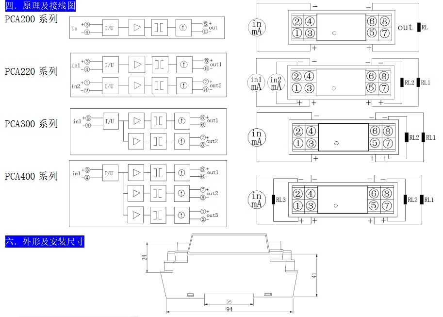 PCA200系列無源直流信號隔離模塊(安全柵),以被測直流電流信號作為能源,并電磁隔離轉換成按線性比例輸出直流信號的模塊。