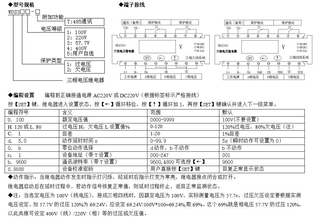 WDS300三相電壓繼電器,適用于高壓35kv,10kv或低壓400v線路及用電設(shè)備,作為三相電壓檢測(cè)及控制設(shè)備。且具備延時(shí)動(dòng)作功能,檢測(cè)精度高,是高低壓系統(tǒng)簡(jiǎn)便可靠的三相過(guò)電壓繼電保護(hù)。
