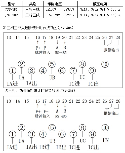 參數(shù):三相失壓斷流計(jì)時,電量追補(bǔ),與電能表配合使用