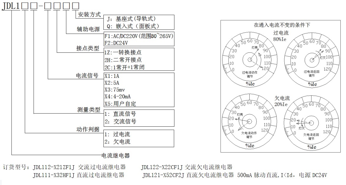 JDL100可調(diào)節(jié)電流繼電器,適用于高壓10kv或低壓400v線路及用電設(shè)備,作為單相電流檢測及控制設(shè)備??烧{(diào)節(jié)范圍0~5A,調(diào)節(jié)及檢測精度高,動(dòng)作時(shí)間快,是高低壓系統(tǒng)簡便可靠的電流繼電保護(hù)。